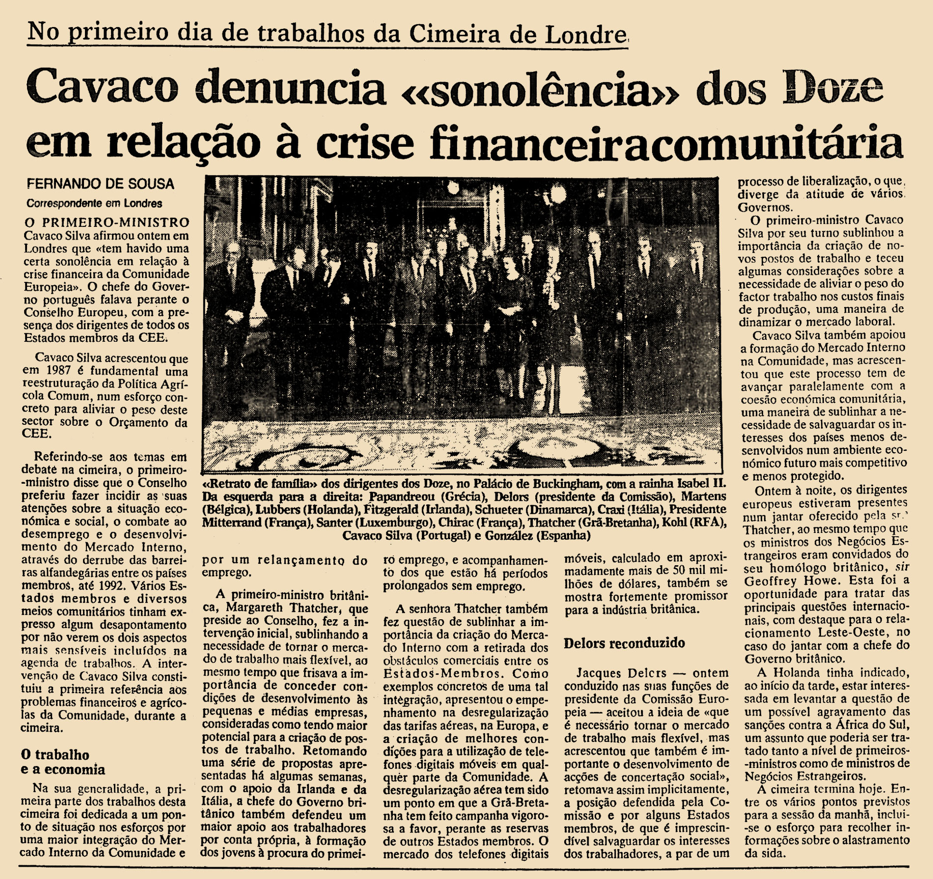 O primeiro-ministro Cavaco Silva afirmou ontem em Londres que “tem havido uma certa sonolência em relação à crise financeira da Comunidade Europeia”. O chefe do Gocerno português falava perante o Conselho Europeu, com a presença dos dirigentes de todos os Estados membros da CEE.