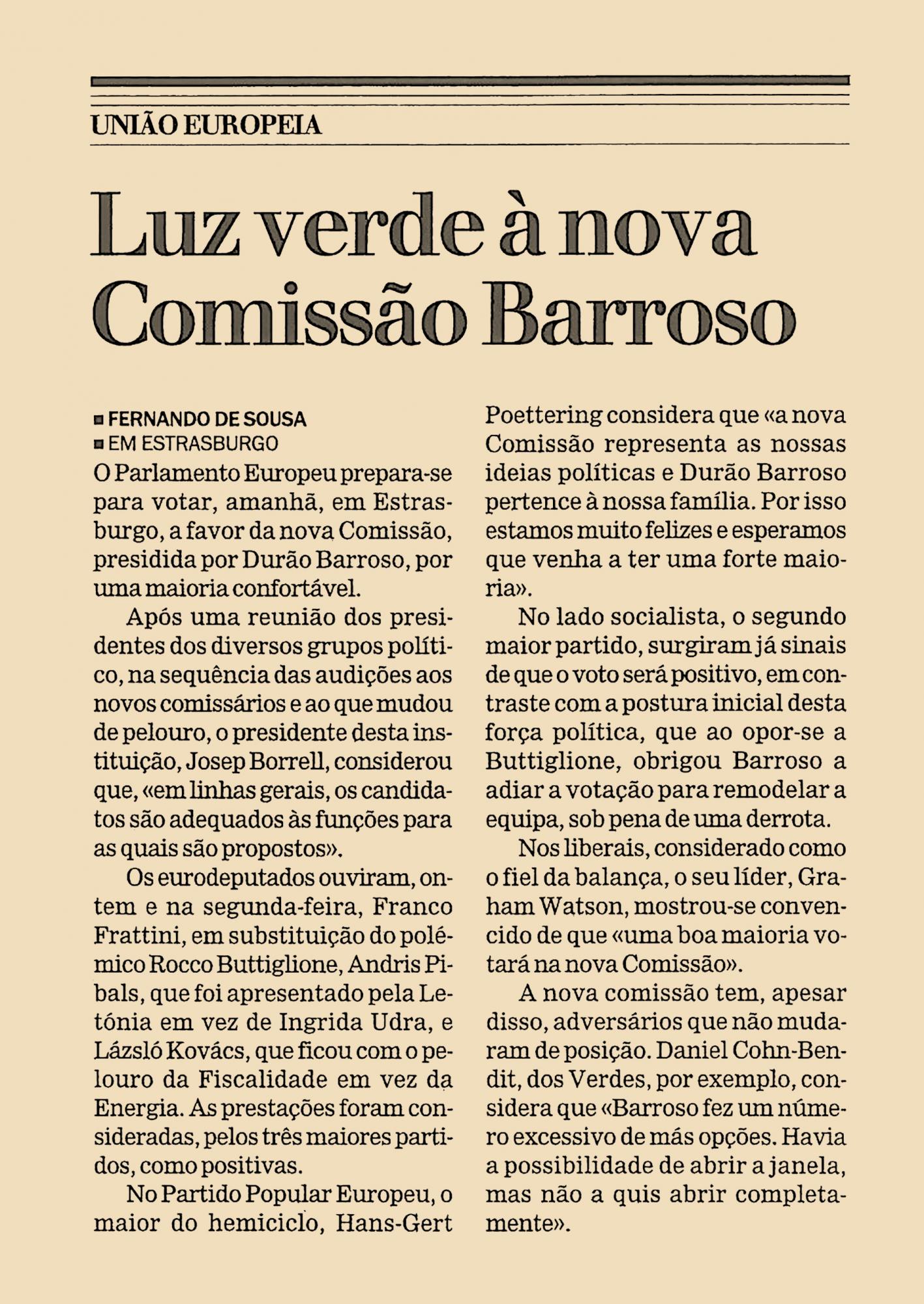 O Parlamento Europeu prepara-se para votar, amanhã, em Estrasburgo, a favor da nova Comissão, presidida por Durão Barroso, por uma maioria confortável.