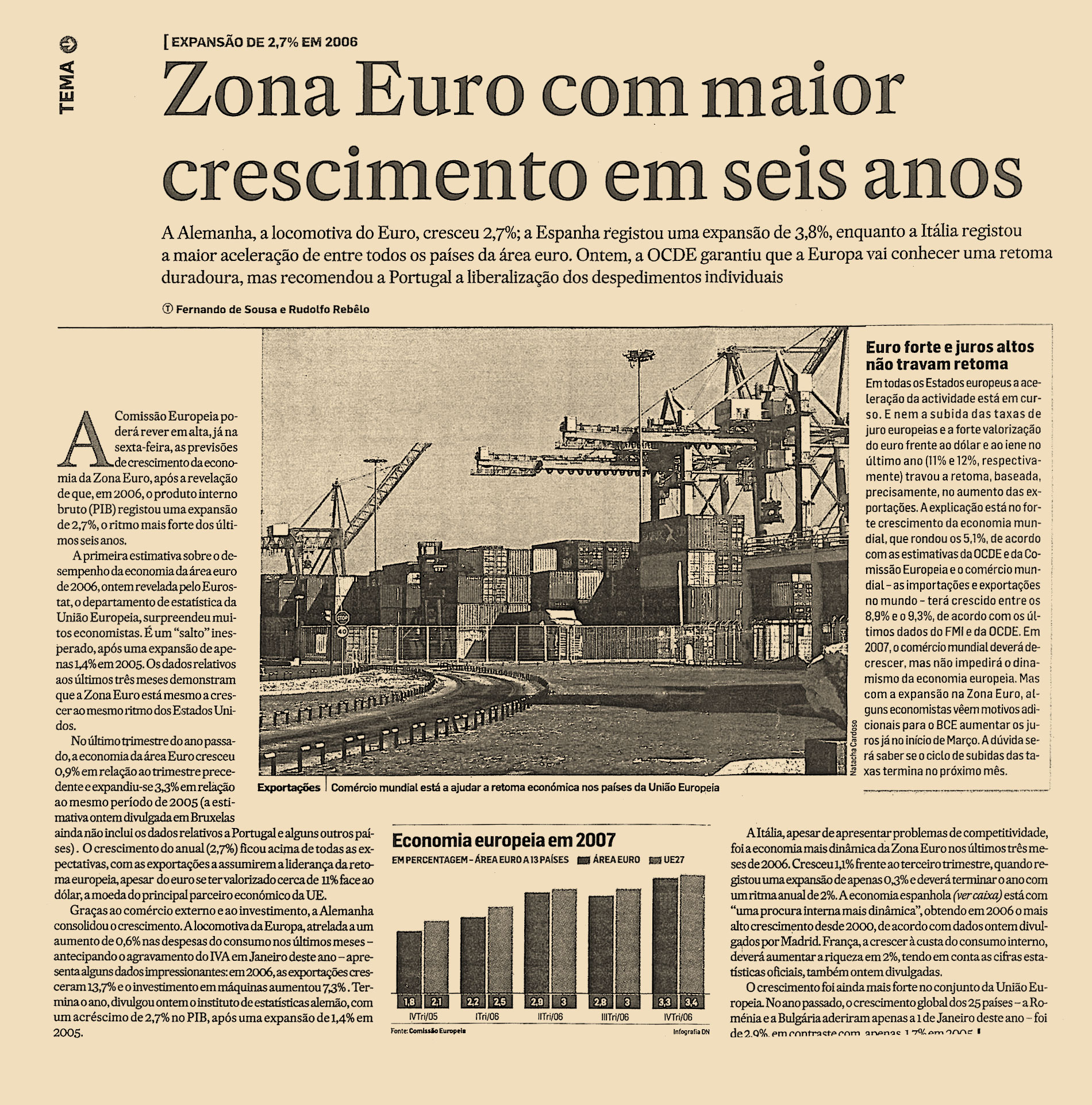 A Alemanha, a locomotiva do Euro, cresceu 2.7%; a Espanha registou uma expansão de 3.8%, enquanto a Itália registou a maior aceleração de entre todos os países da área euro. Ontem, a OCDE garantiu que a Europa vai conhecer uma retoma duradoura, mas recomendou a Portugal a liberalização dos despedimentos individuais.