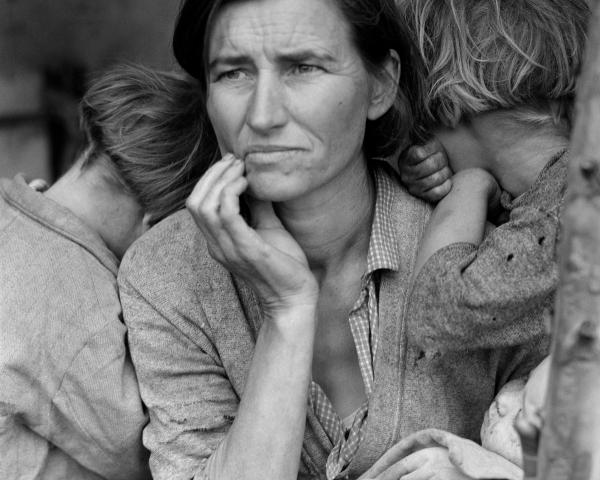 1936. Período de grandes restrições económicas e de pobreza extrema nos EUA. A imagem da mãe migrante, captada por Dorothea Lange, torna-se num ícone da Grande Depressão